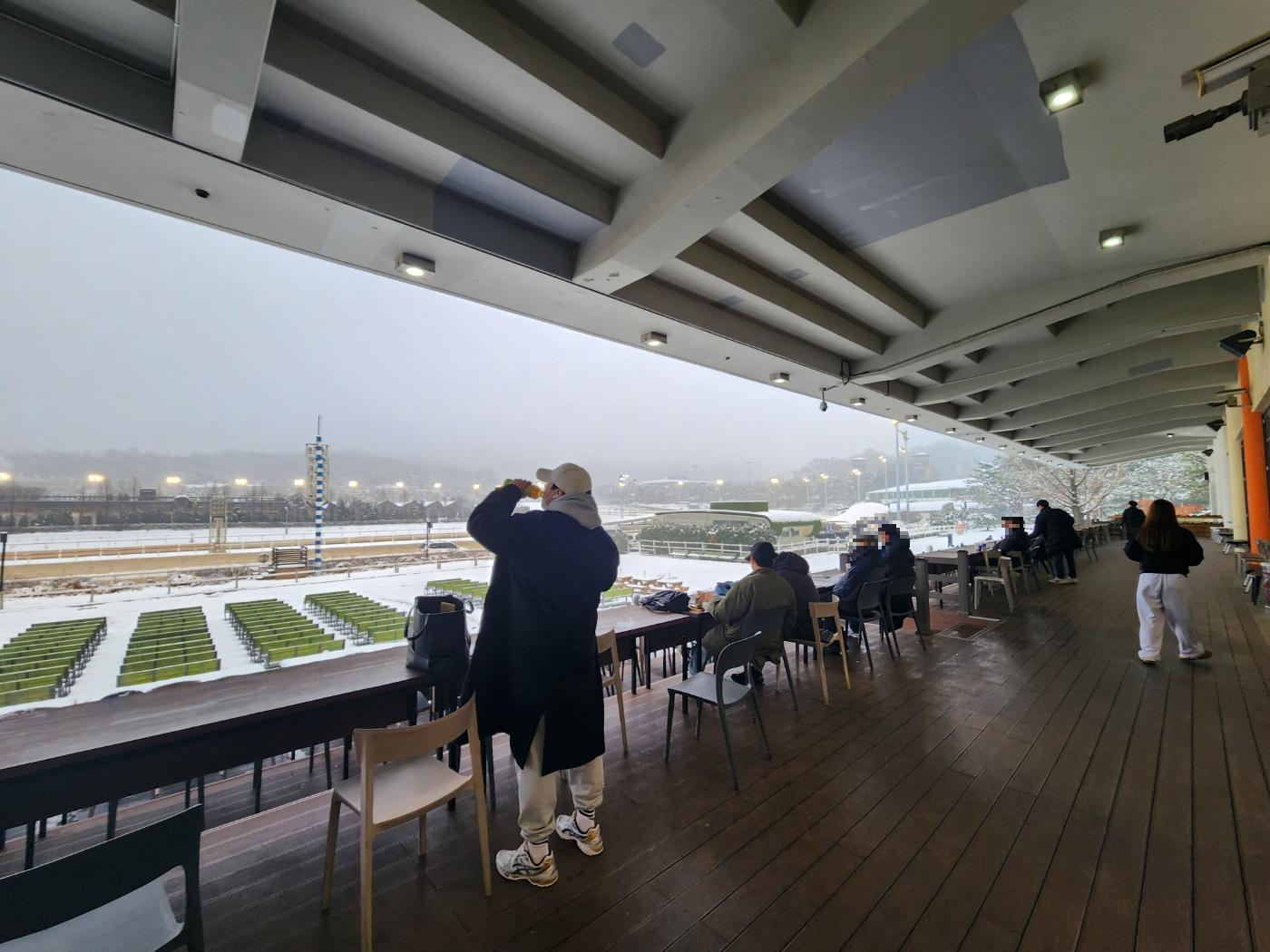 폭설이 쏟아지는 한겨울의 경마, 정말 눈부시게 아름답고 귀한 광경이었음