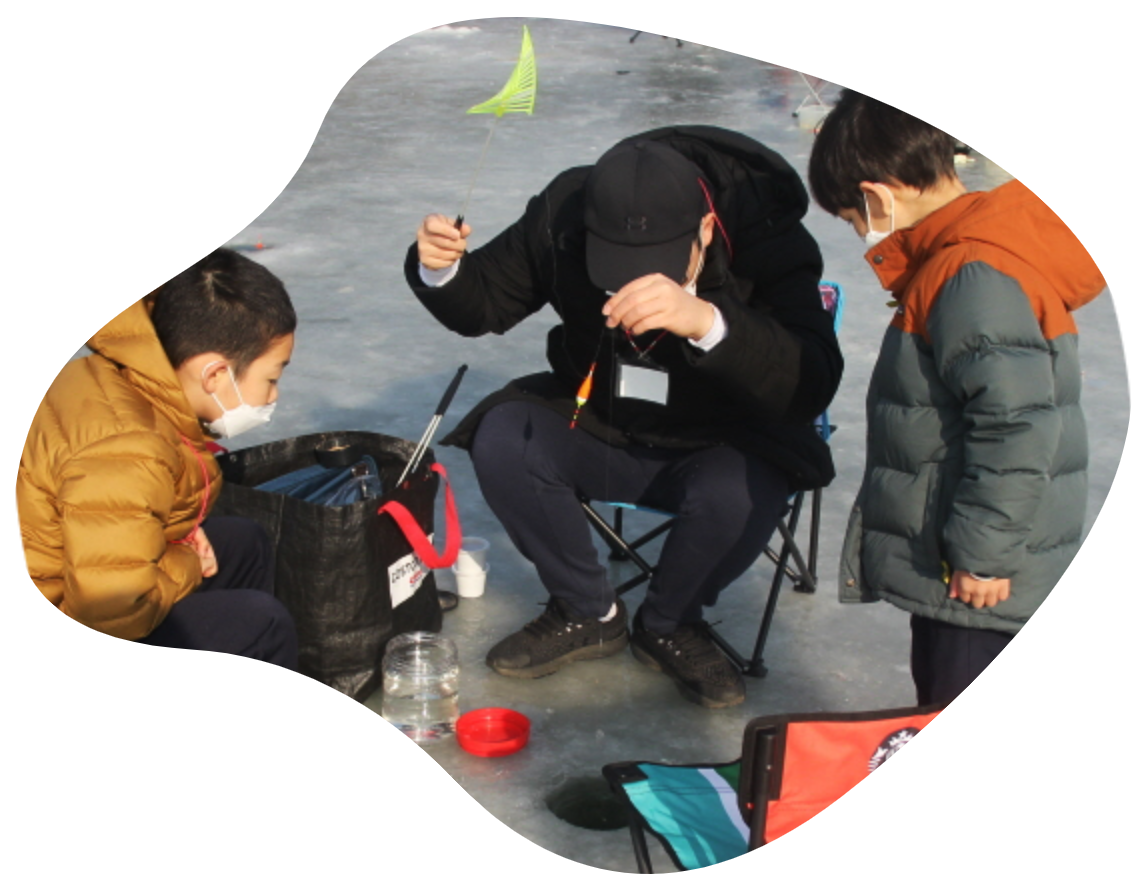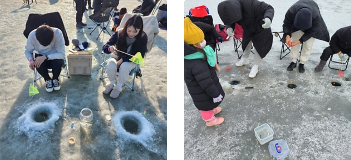 겨울철 얼음판 위에서 펼쳐지는 빙어낚시 겨울 레포츠를 체험해보시길 바랍니다.