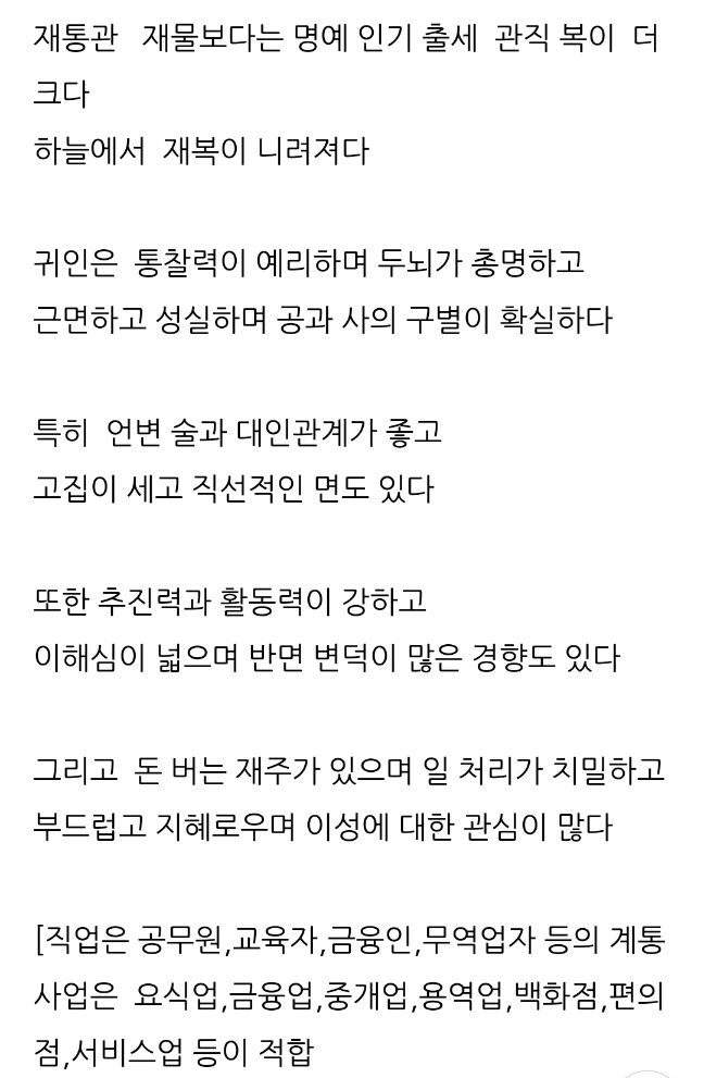 똑같은 사주라도 옛날에는 좋지 않게 풀이 됐더라도 요즘은 아주 좋은 사주로 풀이될 수 있는 것처럼 시대와 분위기에 맞게 해석하는 사람의 풀이 능력이 중요하겠더라고.