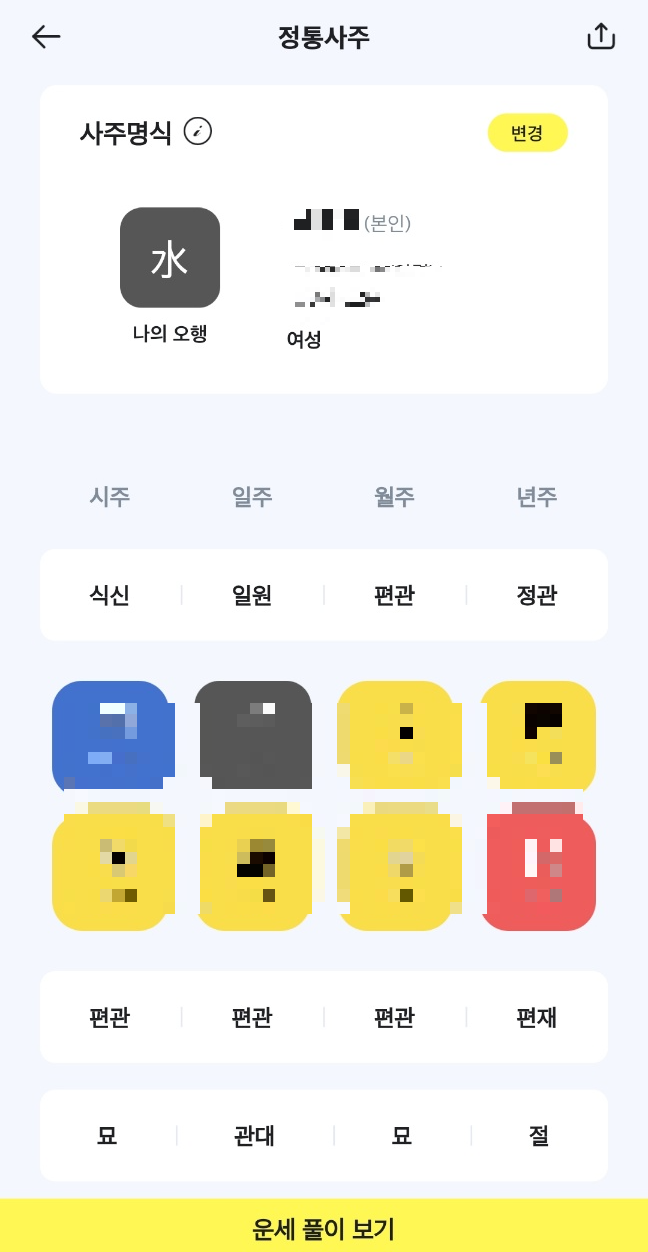 정통사주는 생년월일과 태어난 시간을 입력하면 나의 사주명식도 나온다