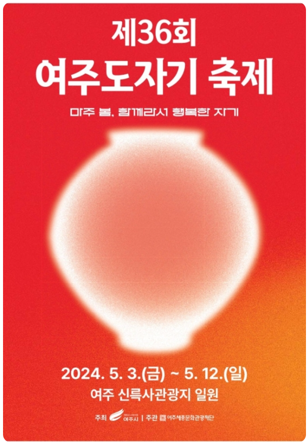 마주 봄, 함께라서 행복한 자기’를 주제로 꾸며지는 제36회 여주도자기축제는 천년의 역사를 지닌 여주도자기의 우수성과 여주시 문화, 관광 콘텐츠가 어우러진 축제로,