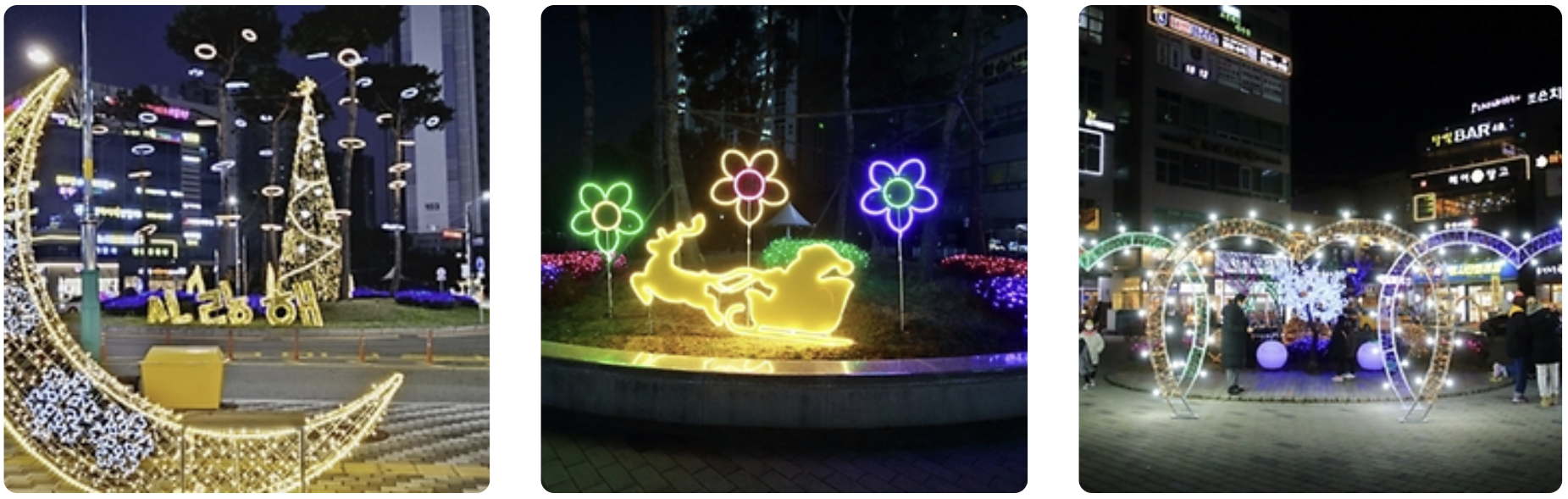 서창2지구 회전교차로 일원에 겨울과 크리스마스에 어울리는 별빛거리를 조성하여 지역주민과 관광객들에게 볼거리를 선사하고 연말연시에 따뜻한 위로와 희망을 전하고 있다.