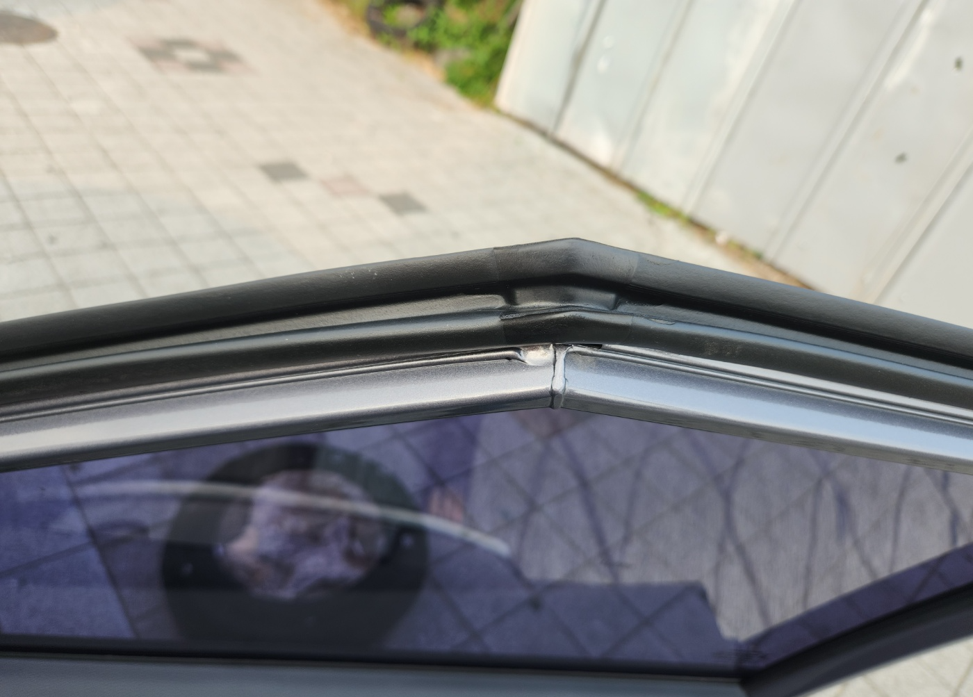 점검 후, 물이 새는게 맞고 원인은 티볼리 차량 도어에 위 사진과 같이 단차가 있는데 이 튀어나온 단차로 인해 고무 패킹(웨더스트립)이 구멍이 났다고 합니다 고무 패킹의 자연스러운 노화도 있겠지만 근본 원인은 저 단차가 문제라고 하셨습니다